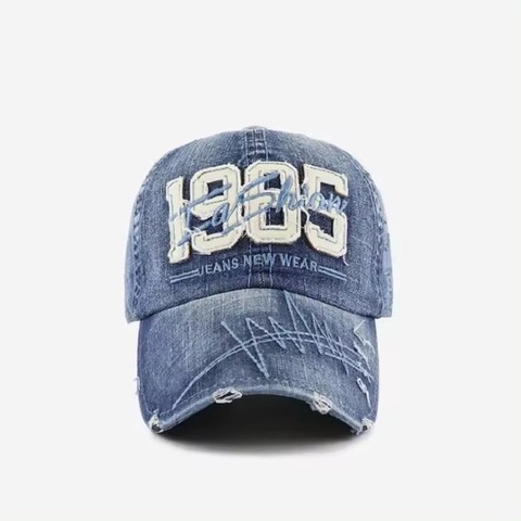 Versão coreana Retro Denim Baseball Cap Sporty Sun Protection Top para Homens Mulheres Spring Autumn Duck Tongue Hat Versátil Carta