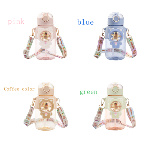 Yüksek değerli yaz plastik bardak Crossbody kayış taşınabilir bardak karikatür sevimli tarzı saman su ısıtıcısı